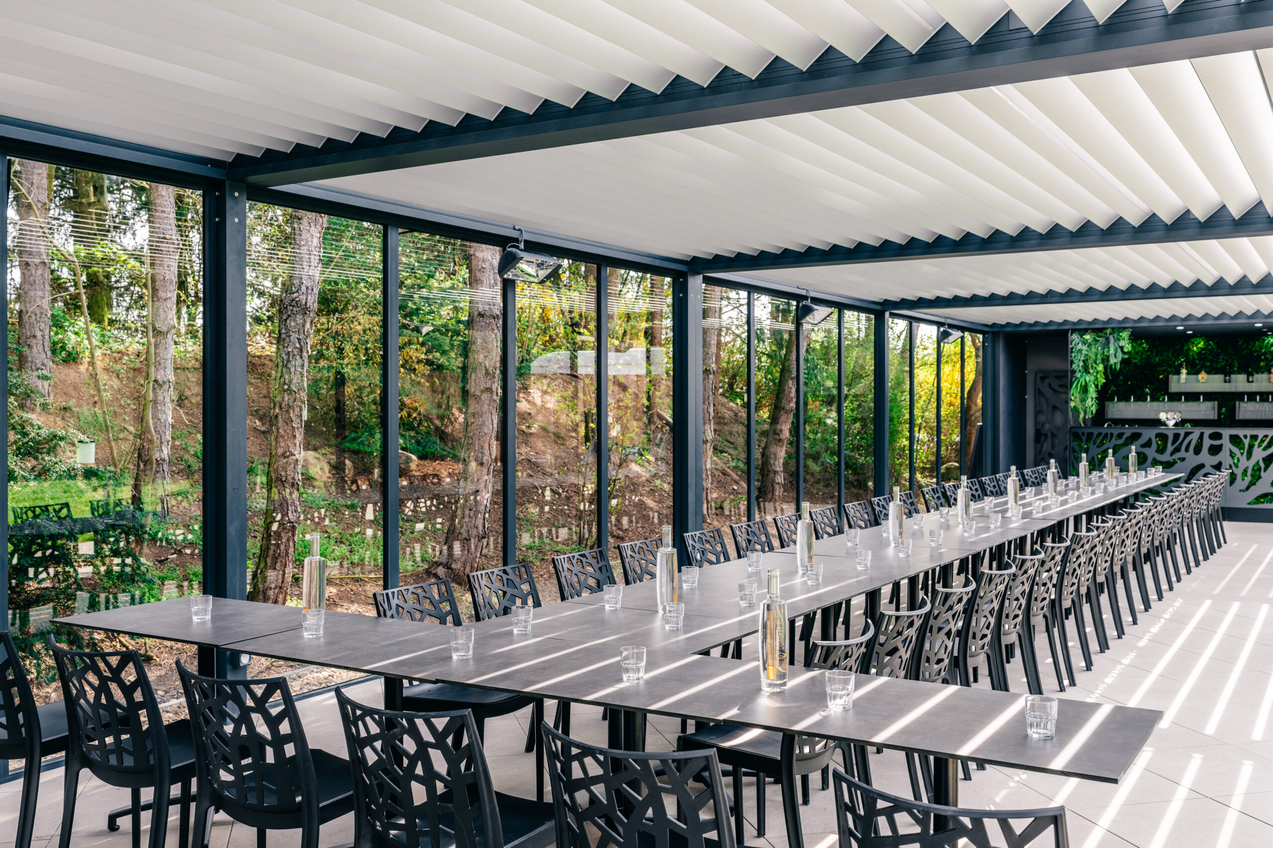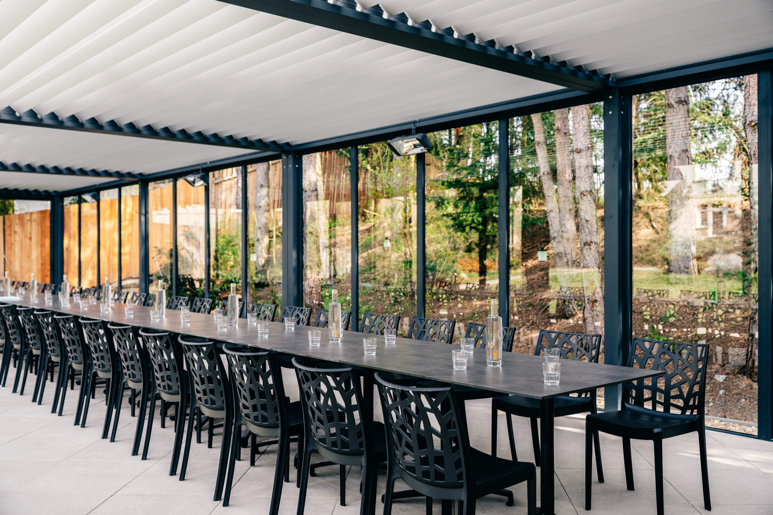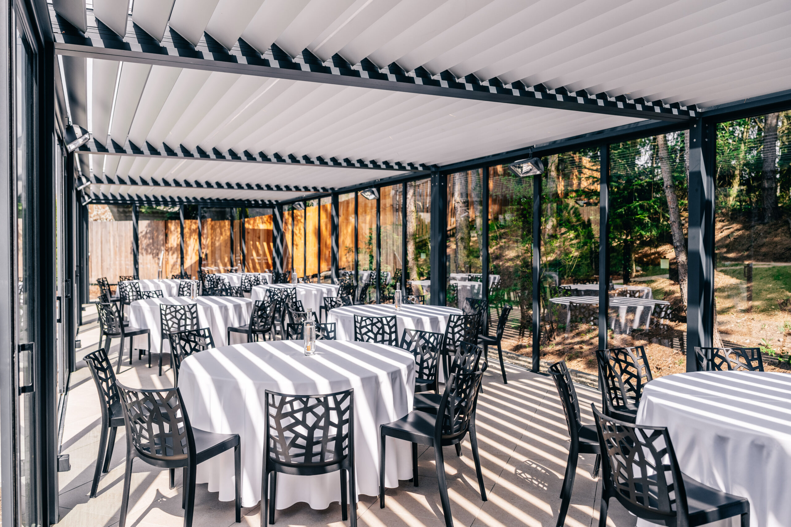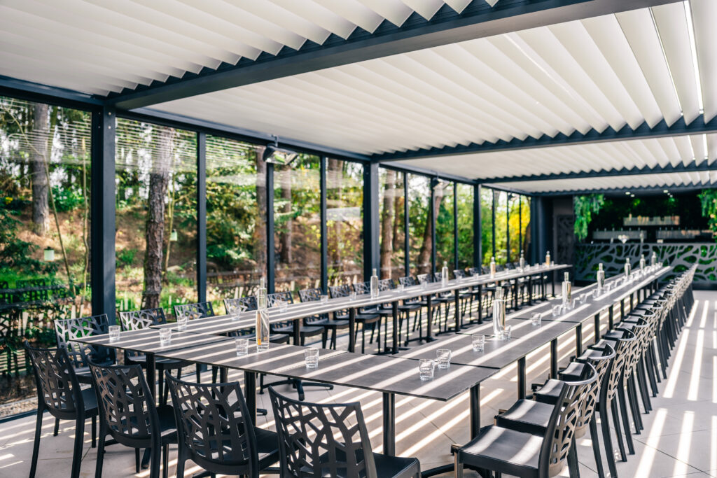- Ein gemütlicher, überdachter Raum für bis zu 60 Personen.