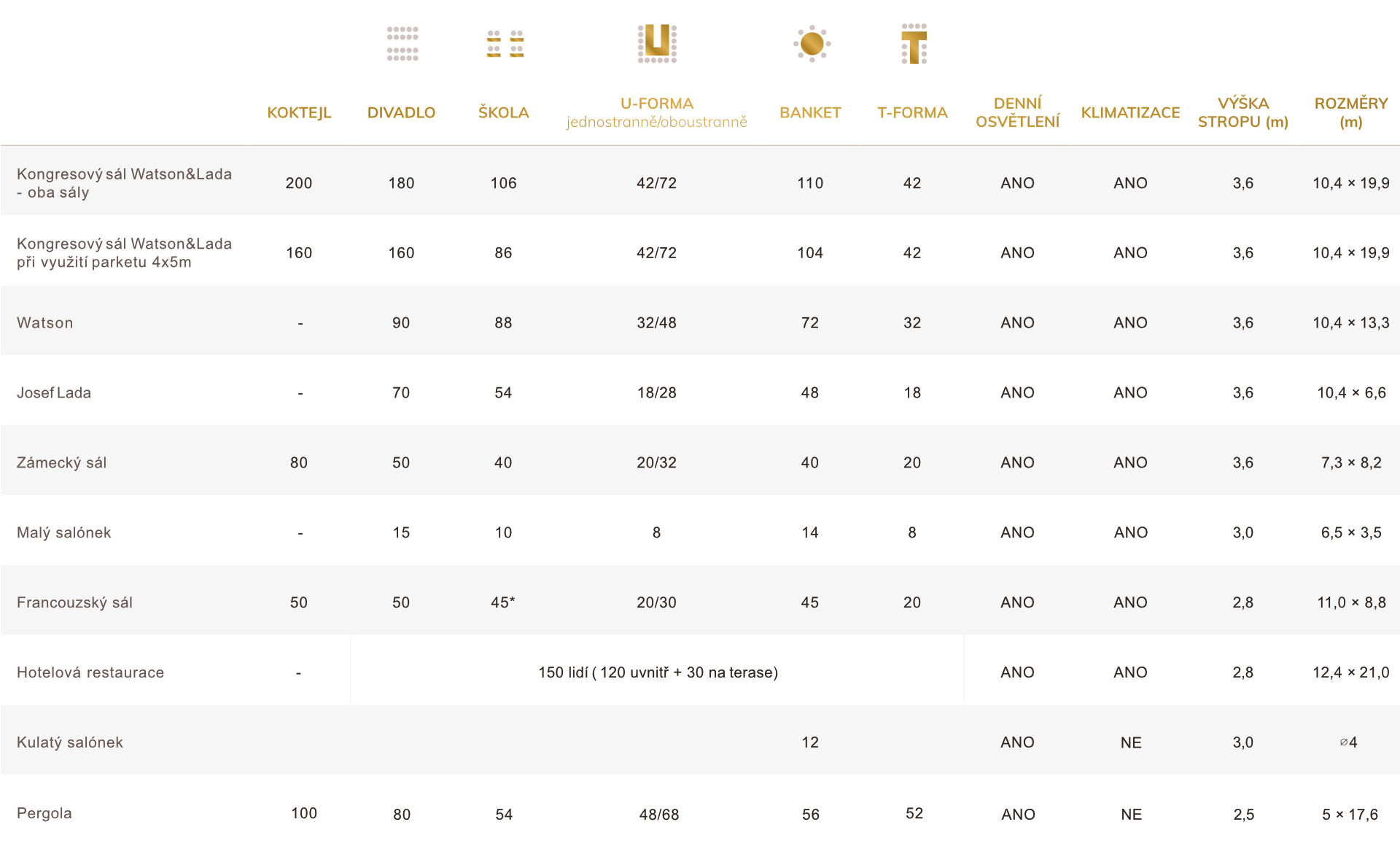 - Die Säle Josef Lada und Watson können zu einem großen Saal kombiniert werden.