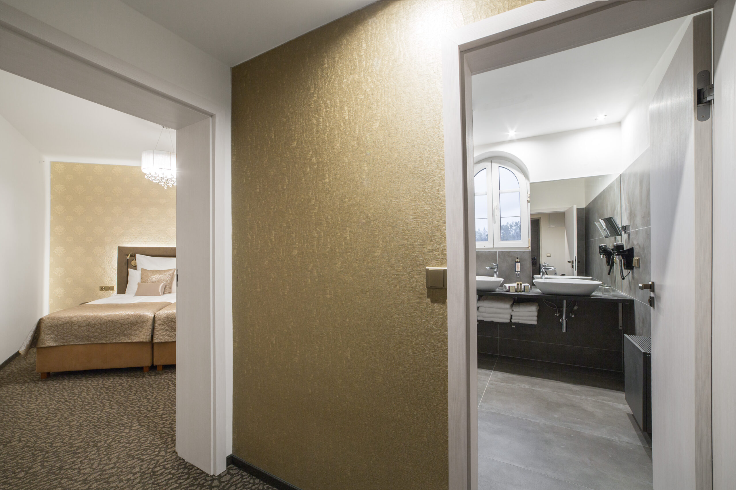 Diese komfortablen Zimmer mit schönem Blick auf den Garten oder den Wellnessbereich verfügen über zwei Doppelzimmer und eignen sich daher für eine Familie oder eine Gruppe von Freunden. Sie befinden sich im 0. bis 3. Stock mit Aufzug.