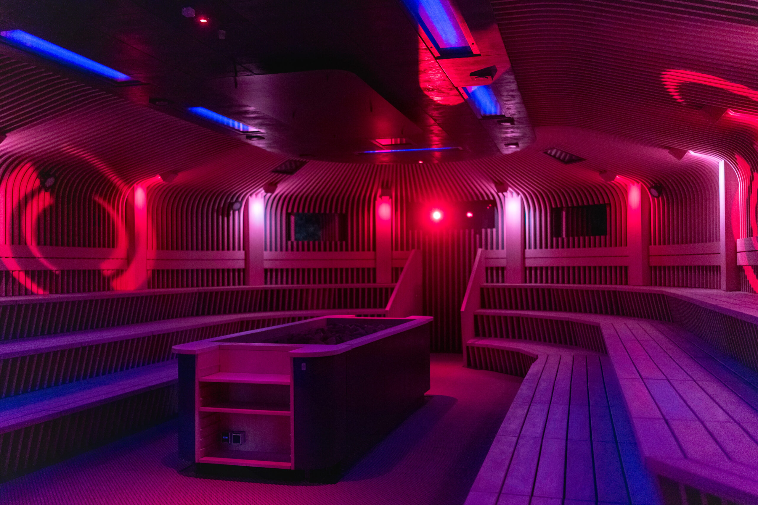 Die geräumigste Außensauna der Saunawelt, einzigartig durch die Platzierung des Ofens mitten im Raum und ein ganztägiges Programm in Form von Saunazeremonien. Luftfeuchtigkeit und Raumtemperatur können je nach durchgeführten Zeremonien variieren. Die Kapazität der zeremoniellen Sauna beträgt bis zu 60 Personen.