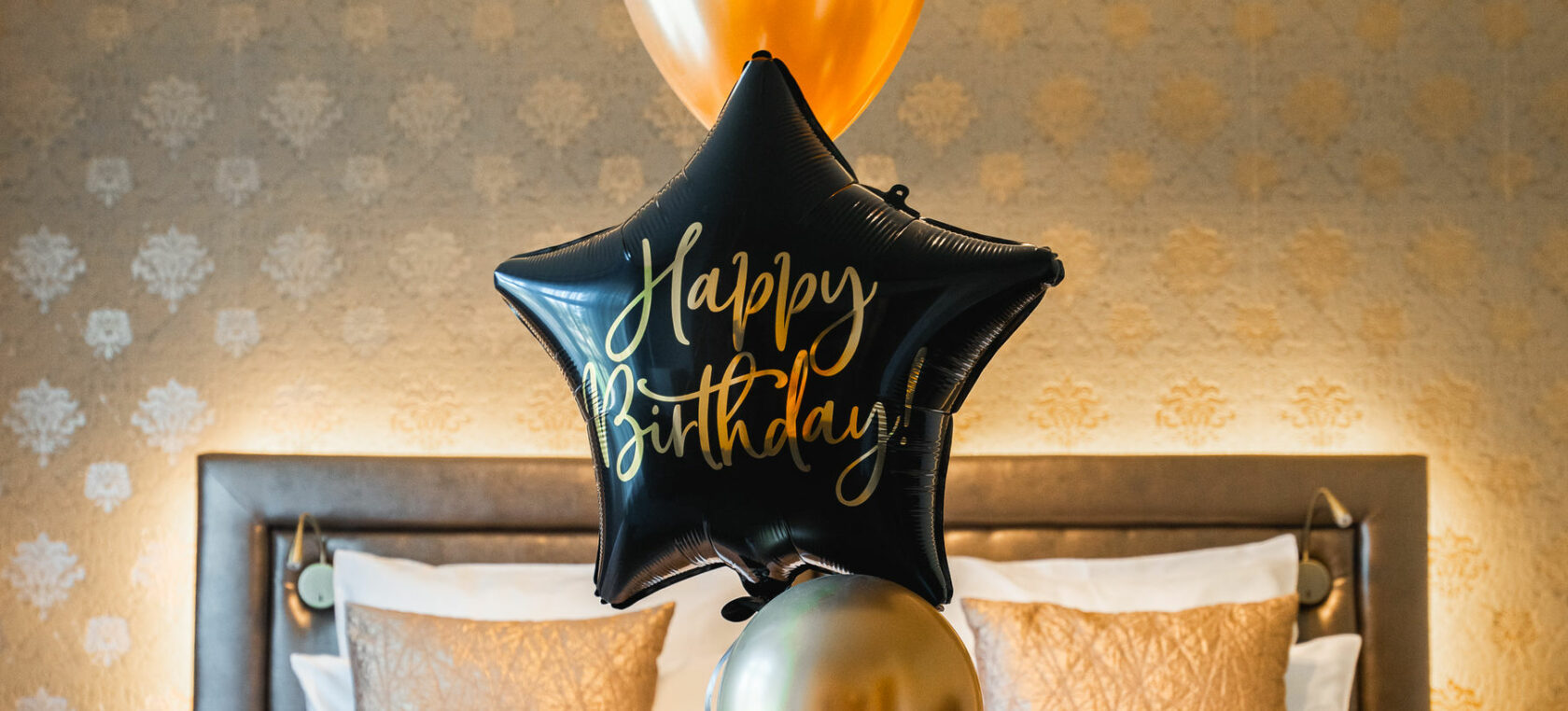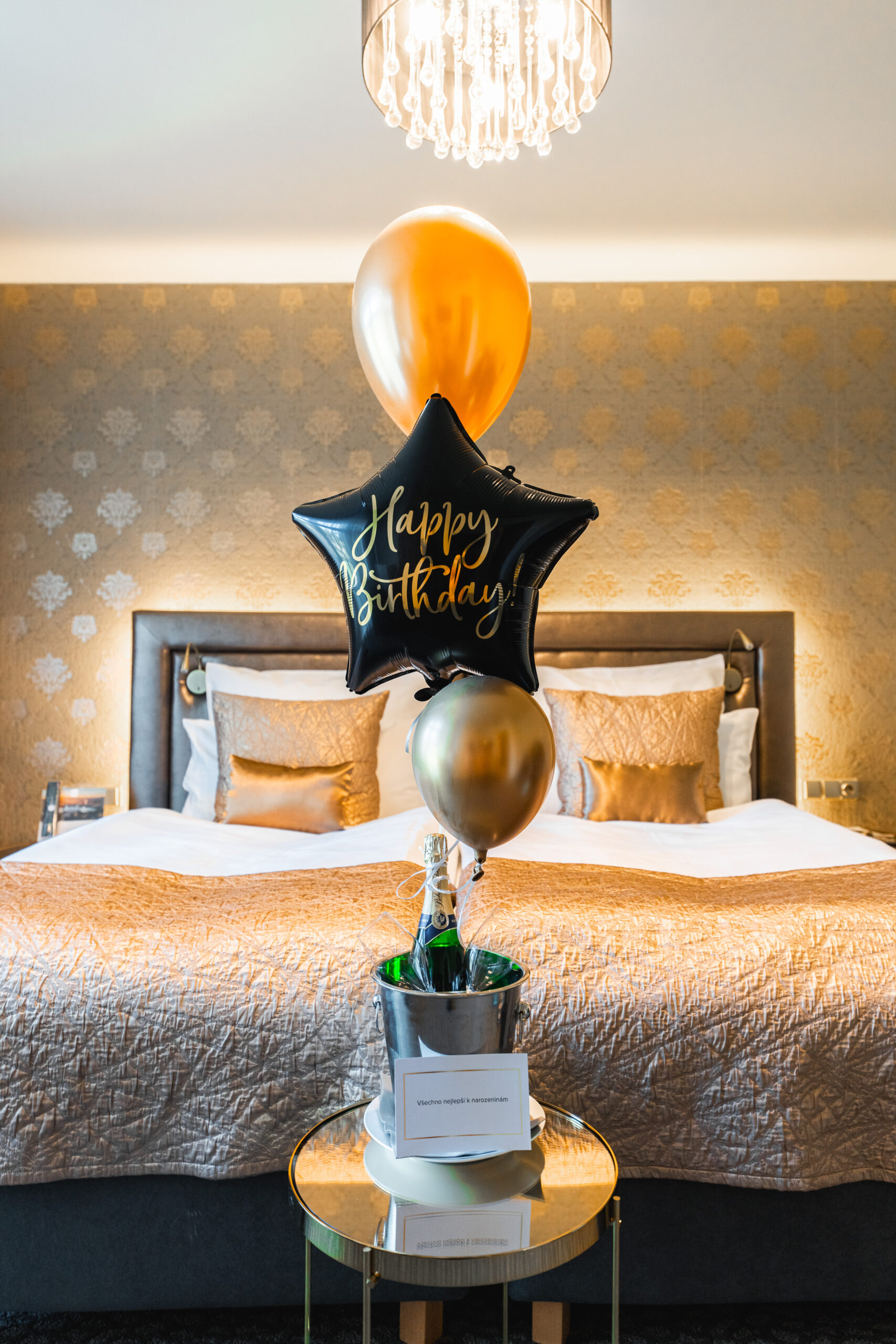 Připravili jsme pro vás speciální narozeninový balíček, který zahrnuje láhev sektu, krásné dekorace s balónky a lahodný dort pro dvě osoby.