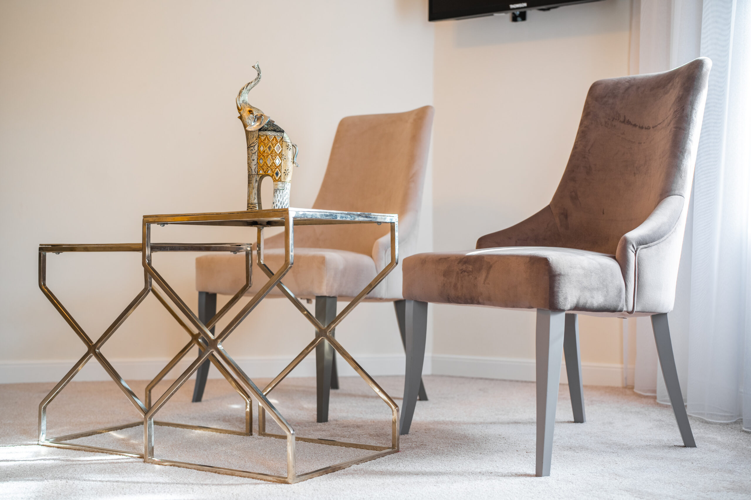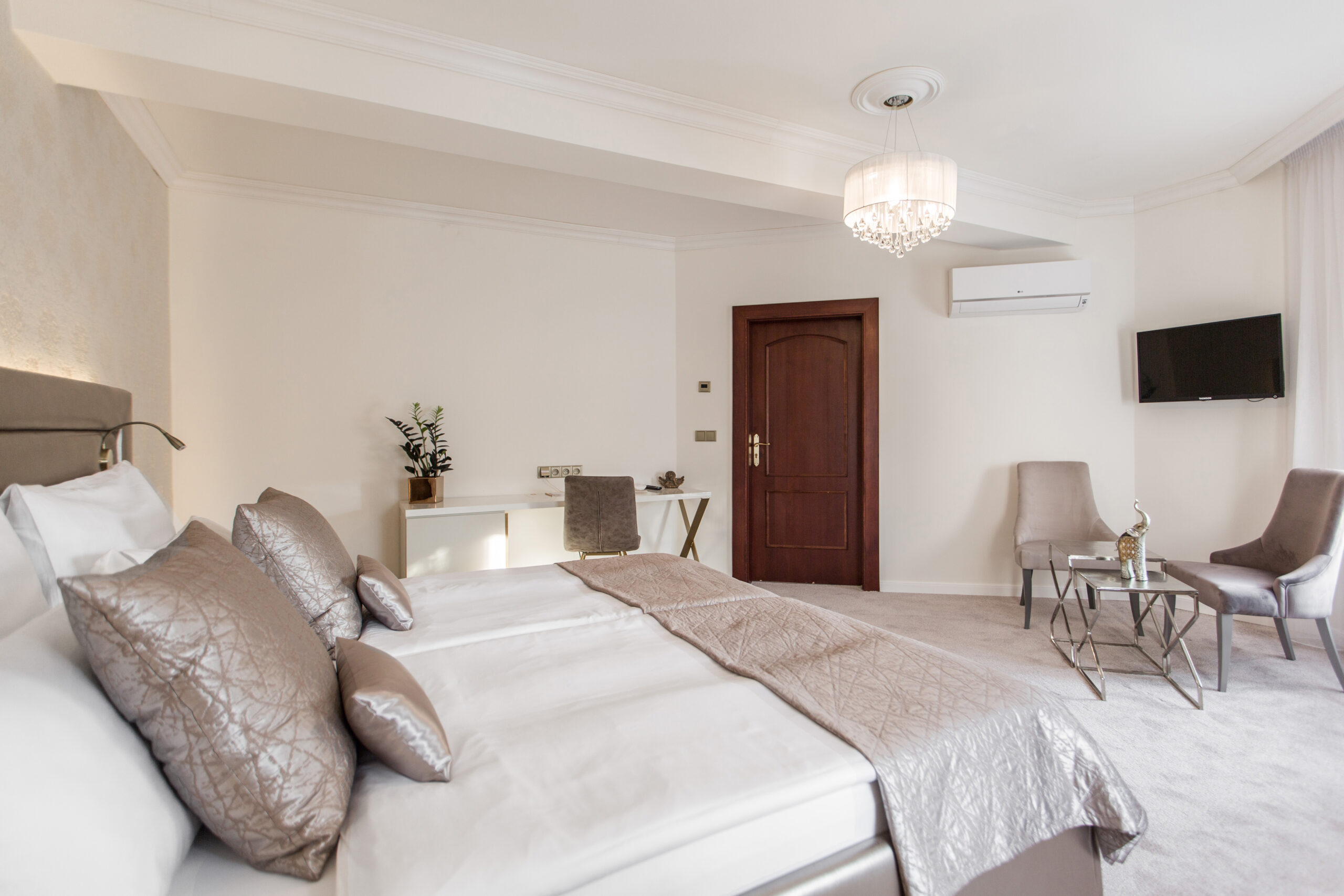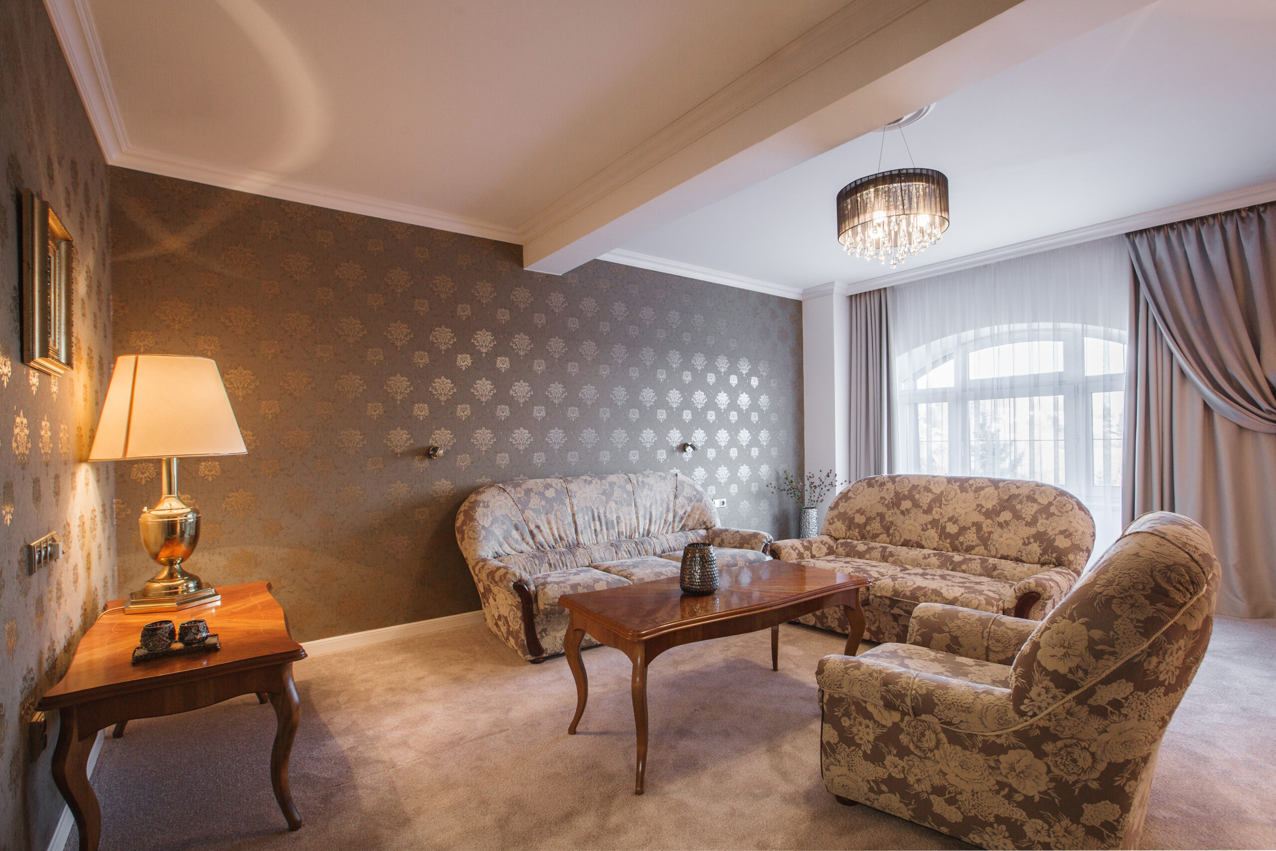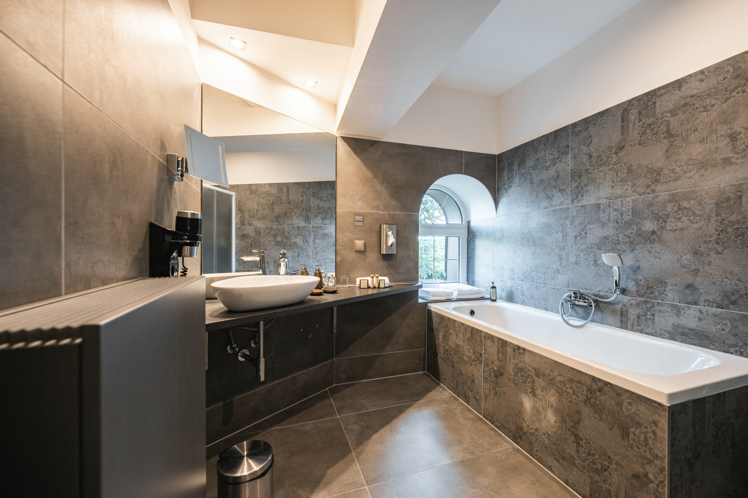 Zámecké apartmá poskytuje romantické prostory s ložnicí, obývacím pokojem se sedací soupravou, šatnou, koupelnou se sprchou a vanou, odděleným WC a prostornou vstupní halou.